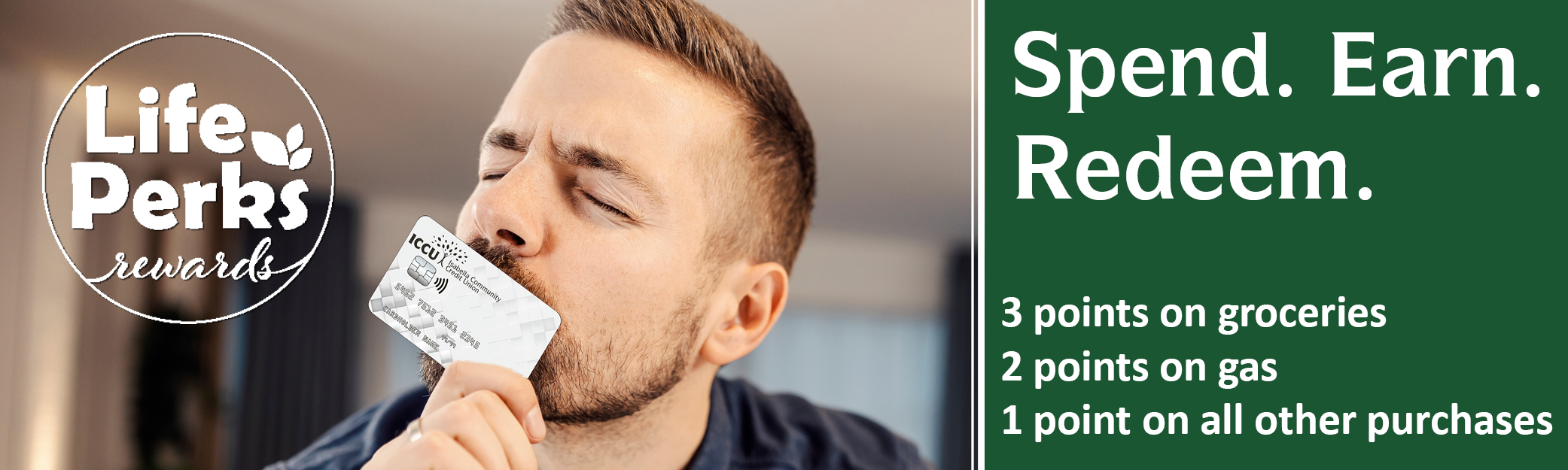 Our cards are handled locally at ICCU, with a fixed rate, and easy rewards that can be redeemed for items, ICCU products and services or cash back.