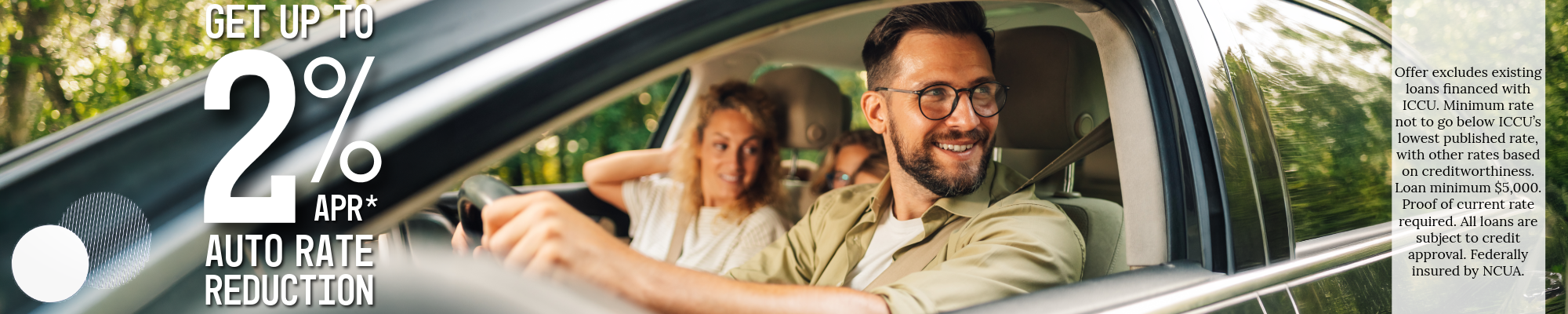 If you are paying too much on your current auto loan, refinancing with ICCU could put real savings back in your pocket. For a limited time, receive a 2% rate discount when you refinance your auto loan from another lender. Lower your monthly payment, reduce interest over the life of your loan, and enjoy the local service you can count on.