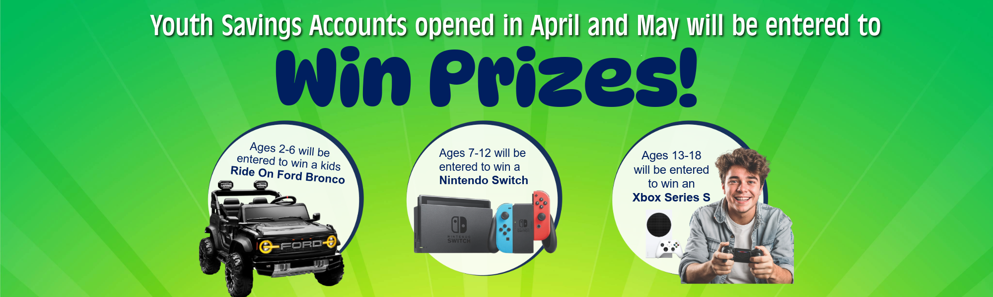 • Open a new Youth Savings Account during the promotion period to receive one entry.